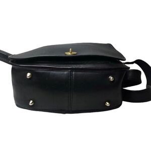 VINTAGE COACH Stewardess Black Glove-Tanned Cowhide Leather Messenger Bag with Single Front Flap and Brass Turn Lock