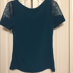 M Worthington Turquoise Blouse with Lace Sleeves