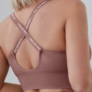 New w/o tags. This is buttery soft, great support and highly comfortable material and design (the bra fabric as well as the straps are very soft to the touch). I got these for running, but these would be better for yoga since they are very comfortable and flexible stretch, but not great for high impact.