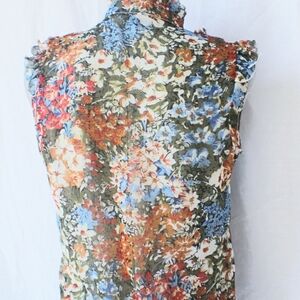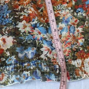Crop top sheer with beautiful flower design. This looks to be more of a crop top with a length of 21 inches. 17 inches across.. Size is small/medium. Please see pic with tag.