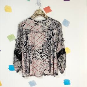 M by Anthropologie Black Print Embroidered Mathilda Top