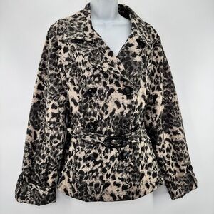 M by Marc Bouwer Snow leopard trench coat Sz L Faux Suede Belted Jacket Lined
