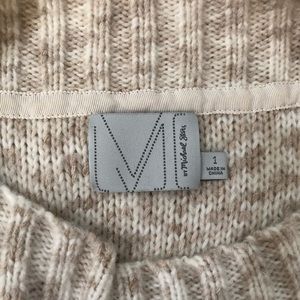 M by Michael Stars Boatneck Knit sweater size 1 in Oatmeal. 3/4 Sleeves. Ribbed trim. 55% Cotton, 43% Acrylic, 2% Angora. Excellent preowned condition. No stains, no rips, no pilling. Clean ready to wear. Measurements taken lying flat.