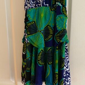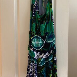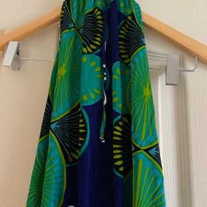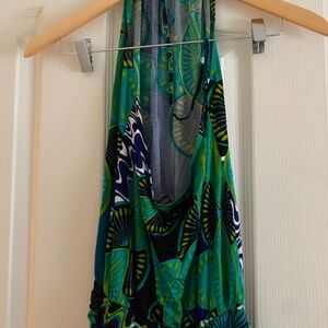 M by Missoni Blue and Green Neck Tie Halter Open Back Summer Dress