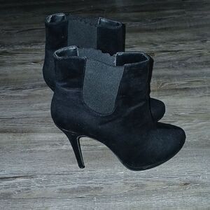 M by Michael Antonio black ankle heeled pull on boots Sz 9 EUC