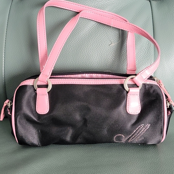 Mid 2000s pink and black monogrammed purse. Small handbag. Never used