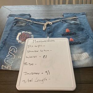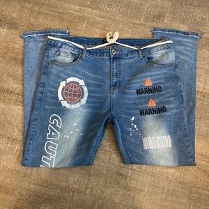 M society Mens Graphic Slim Jeans With Drawstring Waist Cord | 42x32