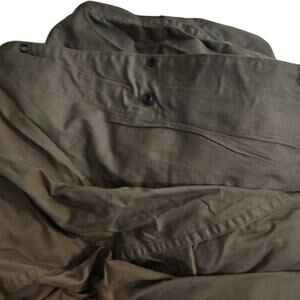 Original M-1945 U.S. military sleeping bag cover designed for use with down-filled sleeping bags during WWII and post-war field operations. Constructed from water-repellent treated cotton canvas, this cover features a visible “U.S.” stamp and is in excellent pre-owned condition. No other markings or contract data remain legible. Designed to provide moisture protection and extend the life of issued sleeping gear. A rare and functional piece of mid-20th century military field equipment.