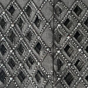 I just love these Ribkoff black denim jeans! They have a cross-hatch or diamond cutout pattern at the ankle with sparkle embellishments. They are adorable and extremely comfortable. They are in excellent condition. Lost weight and buying them in black and blue denim.