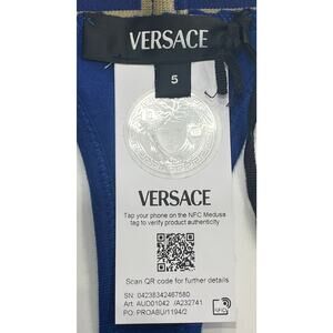 M2-36 VERSACE Women's Sexy Greca Thong Cotton Stretch Blue Size 5/XL