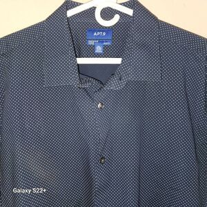 DESCRIPTION: Premier Flex, Slim fit. Good quality casual/dress shirt. Navy with white dots