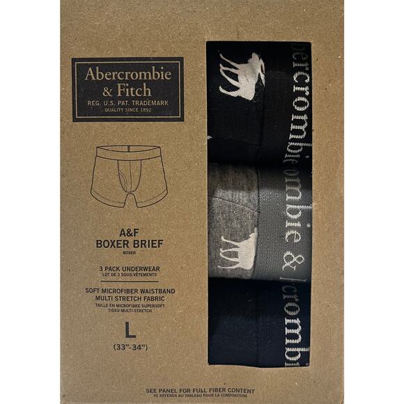 M2-80 ABERCROMBIE & FITCH NWT Men's Boxer Brief Cotton Underwear 3-PACK Large