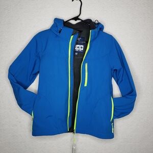 M2C Boys Blue Reflective Full Zip Removable Hood Rain Jacket Size 11.