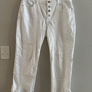 M3- #78 INC Fringe-Trim Curvy Cropped White Jeans, size 10