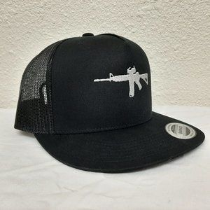 M4 Carbine Rifle Flat Bill Trucker Snapback Mesh Black Embroidered Cap Hat