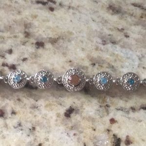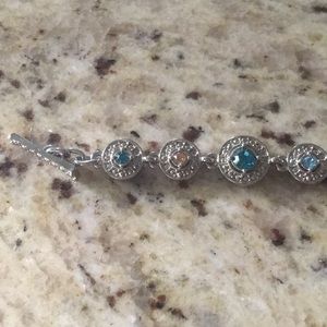 NWOT M4M Silver tone Toggle Bracelet with colored stones. 7.5in