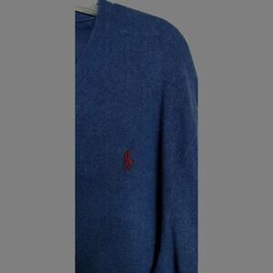 M759) Polo Ralph Lauren Men's Blue V Neck Pima Cotton Pullover Sweatshirt Large