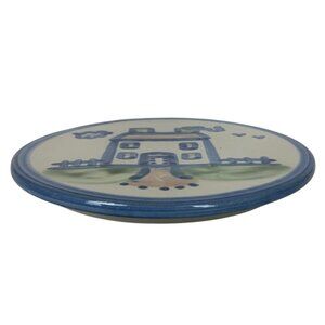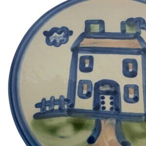 MA Hadley Hand Painted House Round Ceramic Trivet Wall Hanging