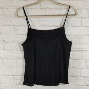 MA Madewell Black Square Neck Stretch Plissé Pleated Crop Cami Tank Top NWT M details: