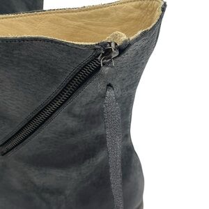MA+ Maurizio Amadei Spiral Side Zip Boots S1G3Z Black Distressed Leather. Marked Size 39, fits like 8.5-9 runs narrow. Calf circumference is only 10” fully zipped. Excellent pre-owned condition with some minor wear on bottom of soles. Has a natural yet intentional distressed look. Please see all photos for details.