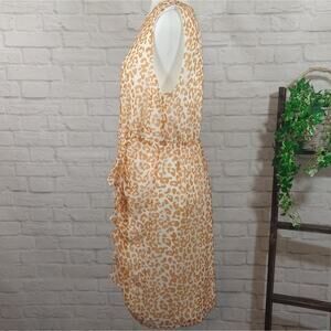 MA Sam Edelman Cream Leopard Cheetah Print Ruched Ruffled Sheath Dress 12 NWT