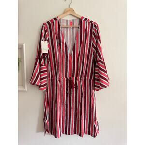 MAAJI Cherry Joy Striped Bell Sleeve Kaftan Mini Dress Size Large NEW