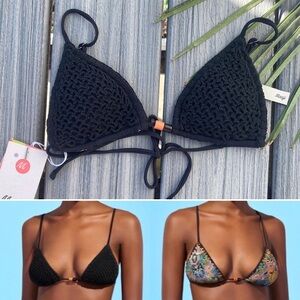 MAAJI Crochet Reversible Black String Triangle Zen Bikini Top - M