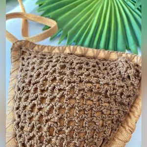 π Lux Maaji!! π OMG GORGEOUS golden shimmer fabric with exquisite details like the crochet fabric and embroidered edges of the string top and Maaji logo etched beading. Crochet detail is so hot this summer and trending hard. This beautiful set reverses to a sexy cheetah print π that coordinates with the solid side for so many luxurious looks! π