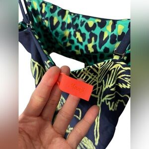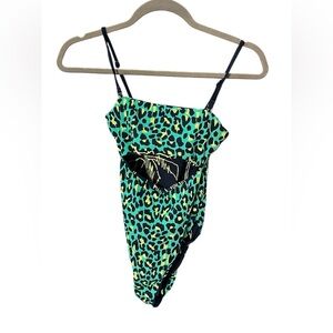 Mix-and-match in a modest vacation-ready cutout one-piece bikini featuring fierce animal print on one side and a vibrant boho-inspired pattern on the other. Square neckline Adjustable straps Front cutout Reversible 92% polyamide, 8% spandex
