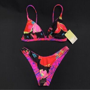 MAAJI Reversible Fixed Triangle Bikini Top w/ Regular Rise Bikini Bottom — LARGE