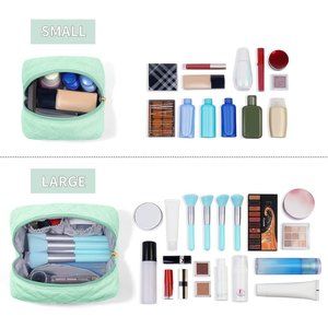 The cosmetic bag is approx 6.69" x 3.15" x 5.54", which are large enough to hold all the essentials for daily use. These make up bags easily fits travel-sized toiletries or full-sized skin-care products. It will be an excellent travel makeup bag.
