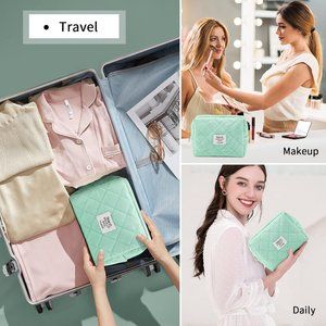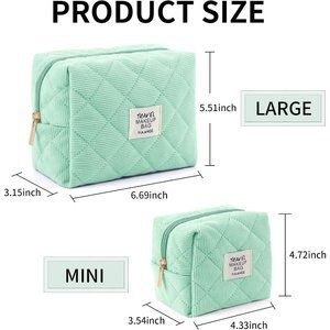 MAANGE Women Cosmetic Purse Corduroy Makeup Pouch Cute Makeup Bag Green 2Pcs