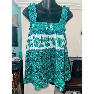 M.A.B.E. UK $146 STEVIE BLOCK PRINT RUFFLE BOHO HIPPIE TOP MADE IN INDIA L