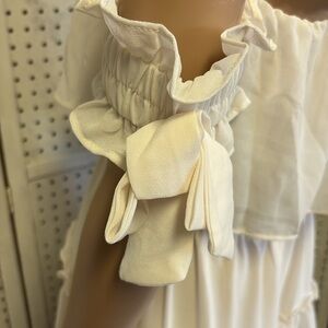 Lightest pink/cream gossamer ruffled mini dress with attached shoulder bands that can be worn on or off shoulders and fully lined 🩷🩷🩷🩷 chest 15(elastic) length 26