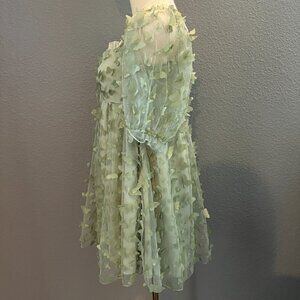 MABLE BUTTERFLY BABY DOLL MINI PUFF SLEEVE SHEER TULLE DRESS MINT GREEN EUC - M