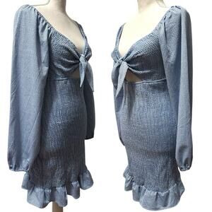 MABLE Blue Gingham Smocked Bodycon Mini Dress Women’s S Long Sleeve Ruffle Hem