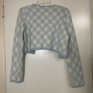 MABLE Blue Cropped Blue diamond knit Cardigan strapless 2pc set size Small
