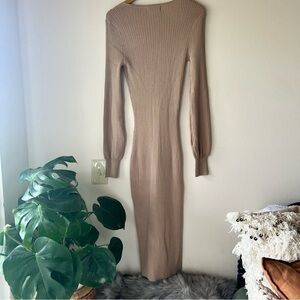 MABLE CLOTHING Ribbed Bodycon Sweater Midi Dress - Taupe SIZE LARGE