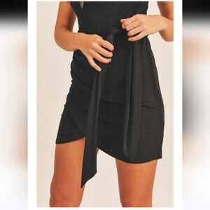 Cowl neck bodycon silky fabric mini dress with selftie sash.