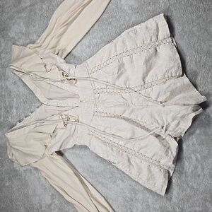 Elegant cream romper with ruffled details and long sleeves. Brand new, never worn. Smoke and pet free home