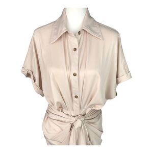 MABLE Cream Satin Drapey Elegant Corpcore Cocktail Button-Down Midi Dress M