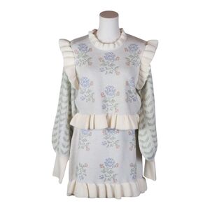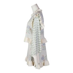MABLE Floral Knit Ruffle Sweater Dress Puff Sleeves Cottagecore M