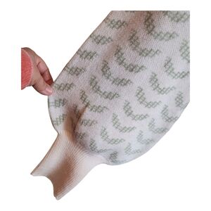 Add a touch of vintage charm to your wardrobe with this MABLE floral knit ruffle sweater dress, style #MST8046A. Featuring a soft pastel floral pattern with delicate blue, pink, and green hues, this cozy dress is crafted from a comfortable acrylic blend (52% acrylic, 28% nylon, 20% polyester). The design includes eye-catching ruffle accents at the shoulders, waist, and hem for a feminine silhouette, while the textured knit sleeves add subtle contrast. Distinctive puffed sleeves in a soft cream knit with a light green chevron-inspired stitched pattern, add a charming contrast to the floral body. The voluminous sleeves taper into wide, ribbed cuffs for a cozy, tailored fit, balancing the romantic silhouette with structure and comfort. These sleeves enhance the dress’s vintage-inspired aesthetic while offering warmth and texture for cooler weather.