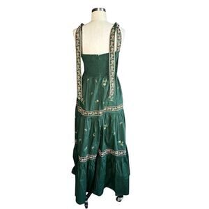 MABLE Orlaith Green Pink Embroidered Tiered Maxi Dress Women's Size Medium