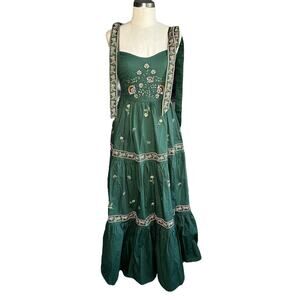 Orlaith green and pink floral embroidered tiered maxi dress from Mable in women's size medium. Excellent, like new condition.