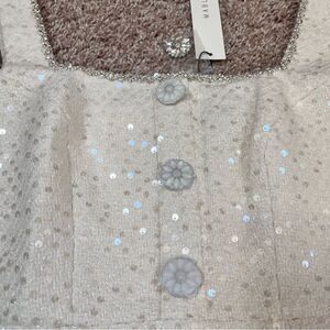 MABLE Tweed Sequin Mini Dress. Size small. New with tags boutique piece! Rhinestone trim. Gorgeous gem buttons, comes with an extra if needed. Such a stunning dress for a bachelorette party, a wedding reception, and a rehearsal dinner if you’re a bride! Lined. Made of polyester and spandex. Dry clean only.