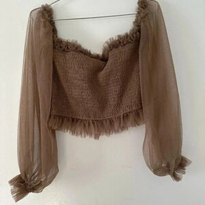 MABLE off shoulder tulle smock crop top.