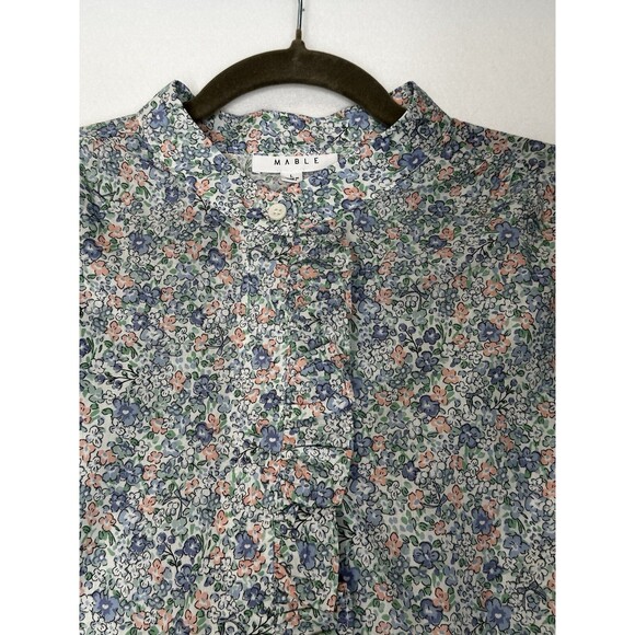 MABLE women size L floral ruffled button down long sleeve peasant prairie top