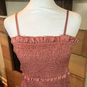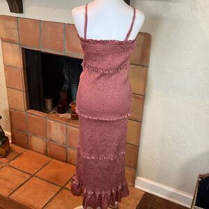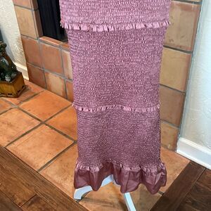 MABLE Body-Con Smocked Strappy Midi Dress, Rose Mauve, size L