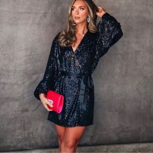MABLE black sequins mini wrap dress sz XS extra small party cocktail prom dance